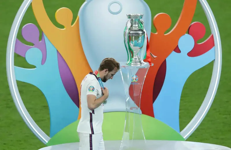 2021年的欧洲杯,凯恩率领英格兰一路高歌猛进。但决赛面对意大利,英格兰却在史诗级点球大战中落败,凯恩也第一次与欧洲杯奖杯擦肩而过。