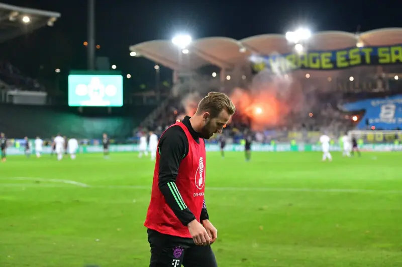 2023年德国杯,凯恩又一次被魔咒困扰。拜仁1-2不敌德丙保级队萨尔布吕肯,创下当届赛事最大冷门,不过出局之战,凯恩未登场,但他的遗憾相信谁都看得到。