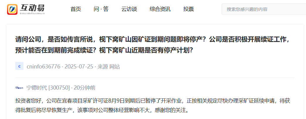 消息面上,宁德时代11日早间通过深交所互动易平台回答投资者提问称,公司在宜春项目采矿许可证8月9日到期后已暂停了开采作业,正按相关规定尽快办理采矿证延续申请,待获得批复后将尽早恢复生产红腾网配资,该事项对公司整体经营影响不大。